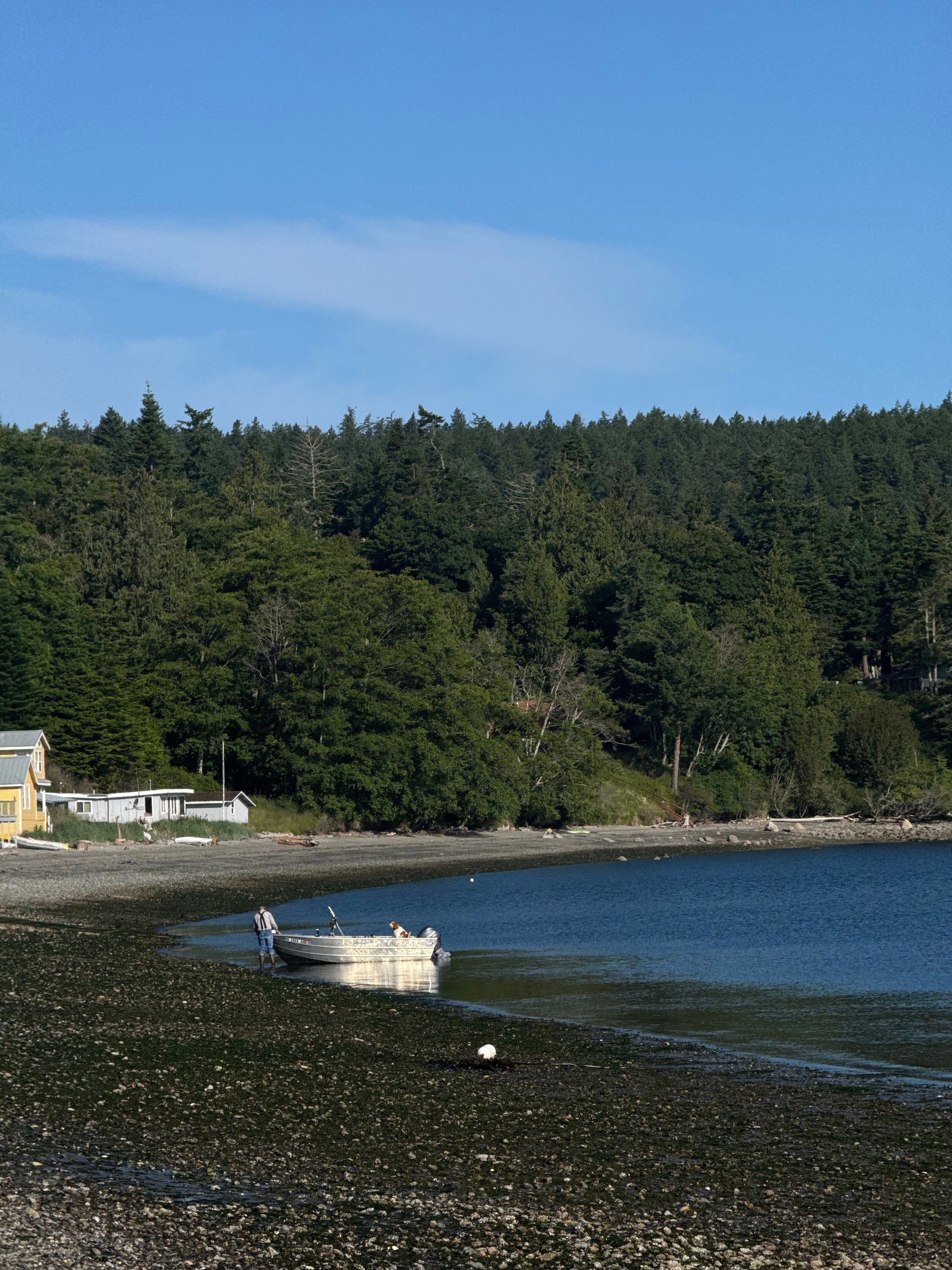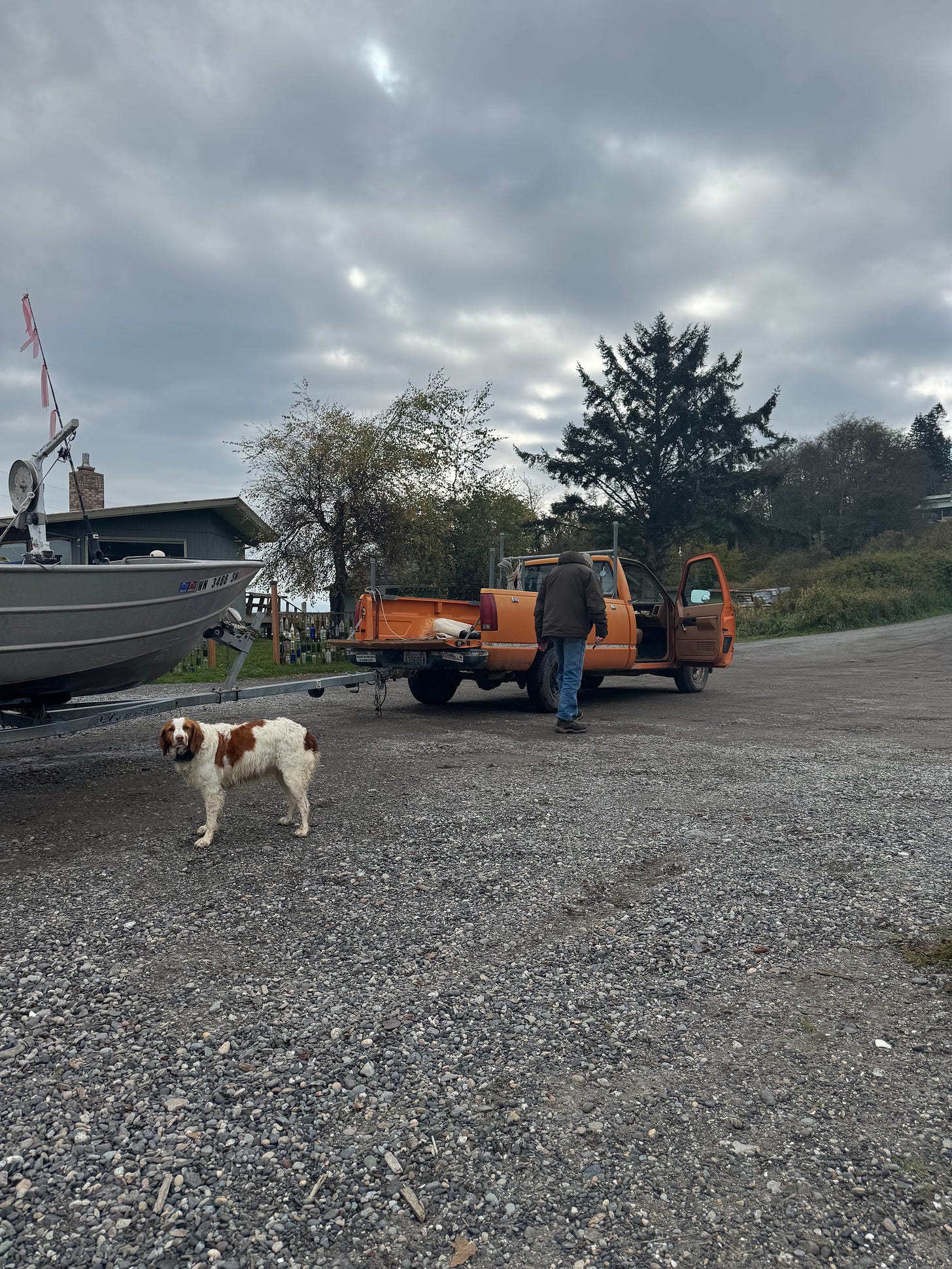 One of the dogs that we watched for the day is not actually hers. Meg, the wild Brittany Spaniel with caramel brown eyes and a nutmeg-colored coat (hence her name, Meg), belongs to another one of our neighbors, Andrew. Andrew is a long-time island resident, having spent over 60 years calling this little island tucked away in the Salish Sea home. He is gruff, weathered, and opinionated. The mainland, with all its easy conveniences and unnecessary stoplights, be damned. Andrew sticks to his landline, his daily agate walks, and his trusty mandarin-orange pickup. We will spare you the content of his bumper sticker collection.