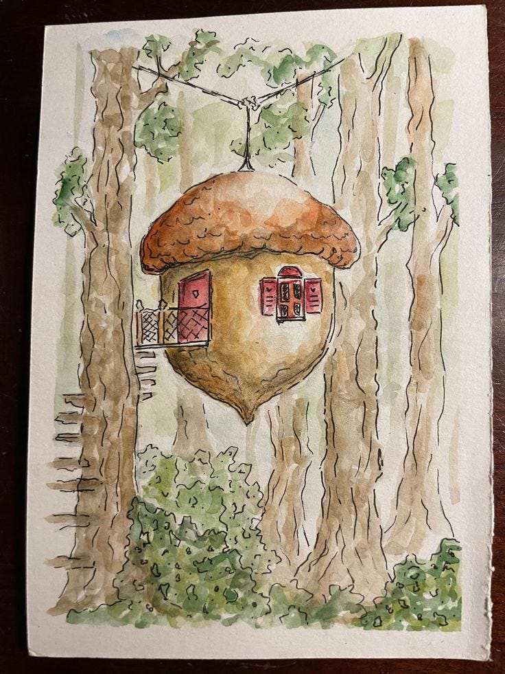 We nestle ourselves into a treehouse, and we have found a launching pad for imagination.